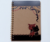 メメントモリモリ 様オリジナルノート 「本文オリジナル印刷」を利用してイラストを印刷 メメントモリモリ 様オリジナルノート 「書きま帳+クラフトノート」で表紙だけでなく本文用紙もコーディネイト。こちらはヴィンテージ感あふれる「OK未晒 65.0kg」 メメントモリモリ 様オリジナルノート 「角丸加工」で見た目もさわり心地もやさしくなります