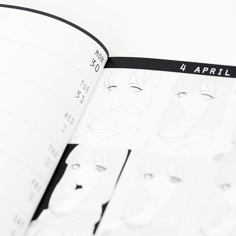 様々な創作グッズを製作する中で、「四六時中使用する」「そばに置いてもらえるアイテム」は何かなと考え、スケジュール帳の製作を決めました。